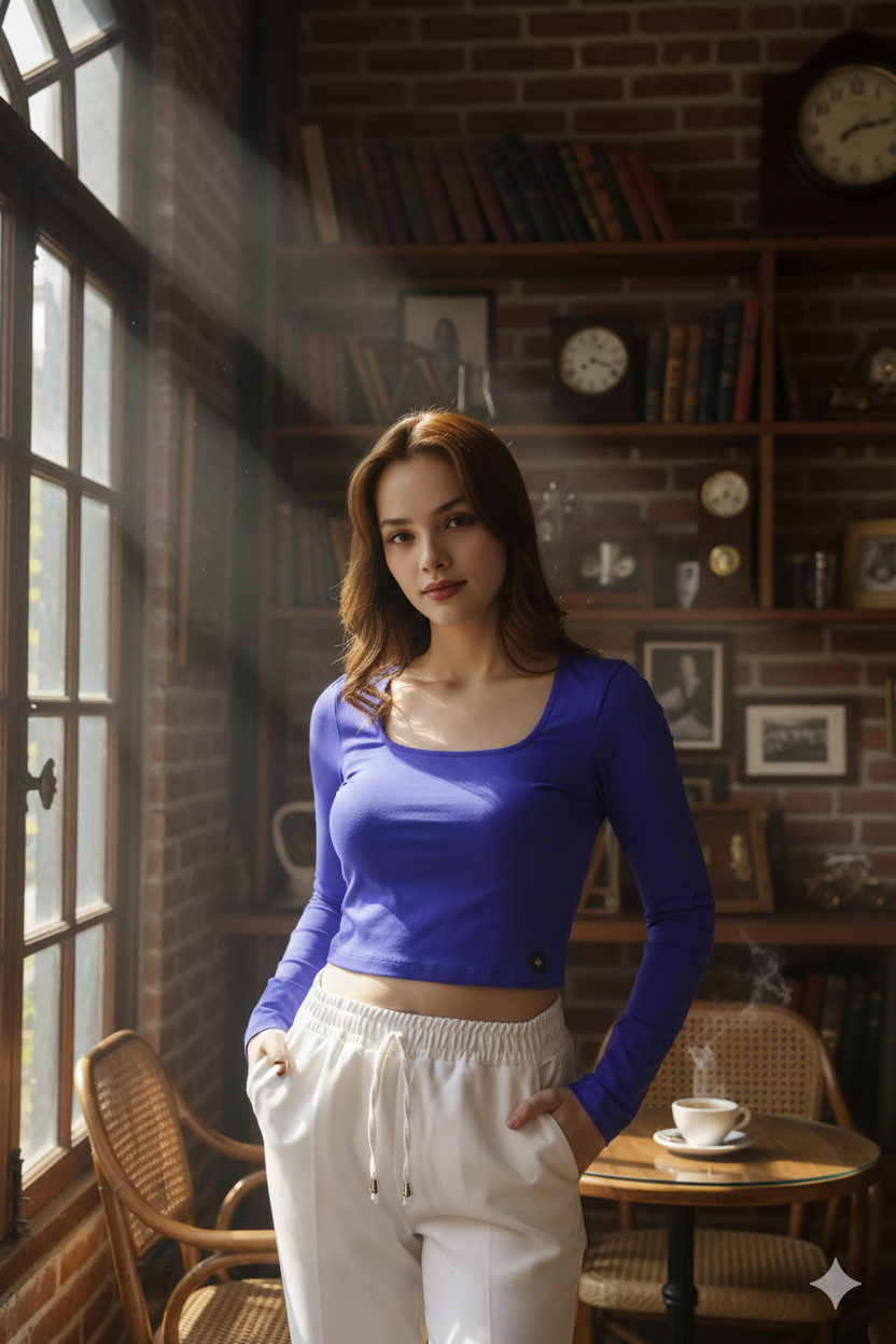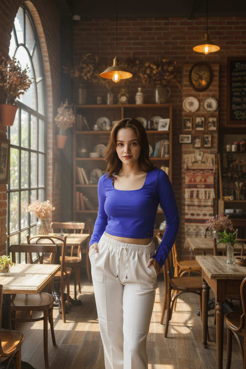 Crop kesimiyle yüksek belli jean veya eteklerle mükemmel uyum sağlayan bu bluz; gündüz şehir stili, kafe/alışveriş buluşmaları veya katmanlı ofis kombinleri için ideal.