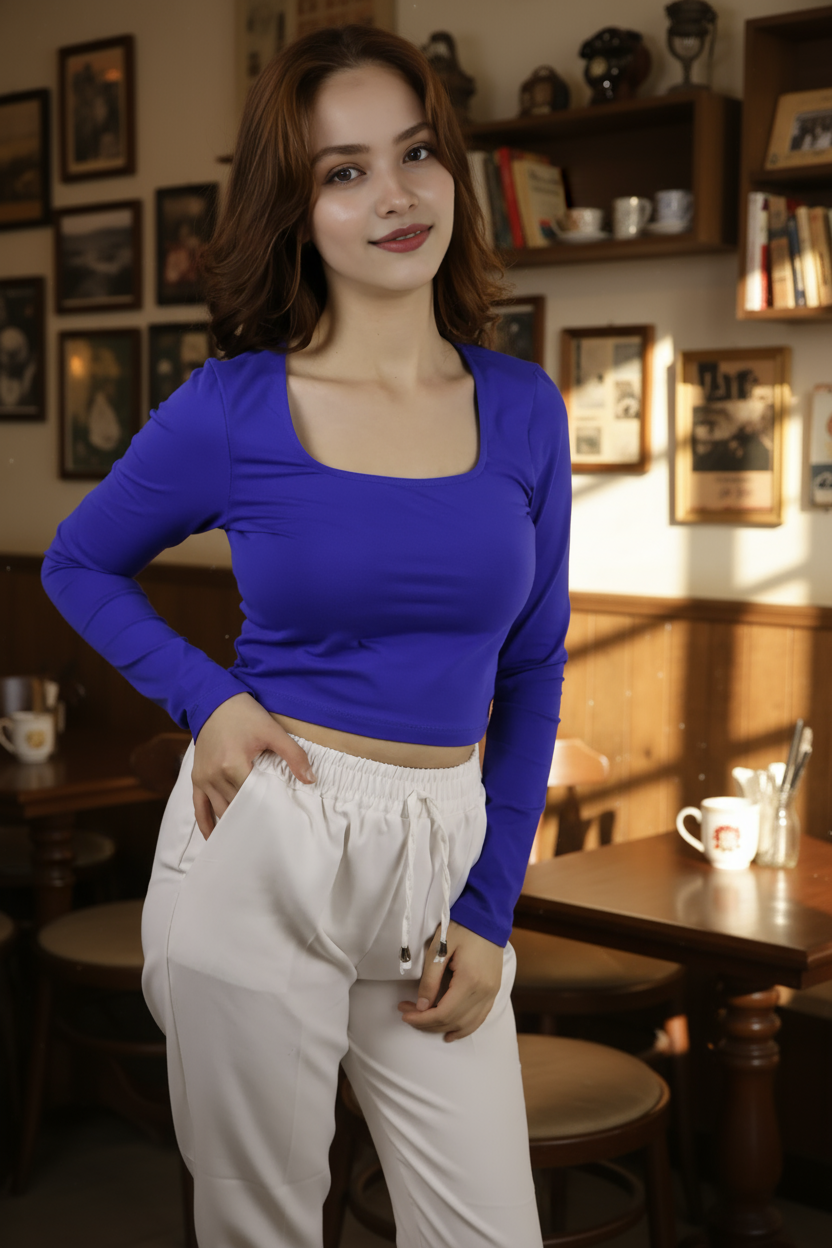 Minimal estetik ve yüksek konforu bir arada sunan kare yakalı crop bluz, kaliteli %95 pamuk – %5 elastan kumaşıyla nefes alır, yumuşak bir his verir ve formunu uzun süre korur.
