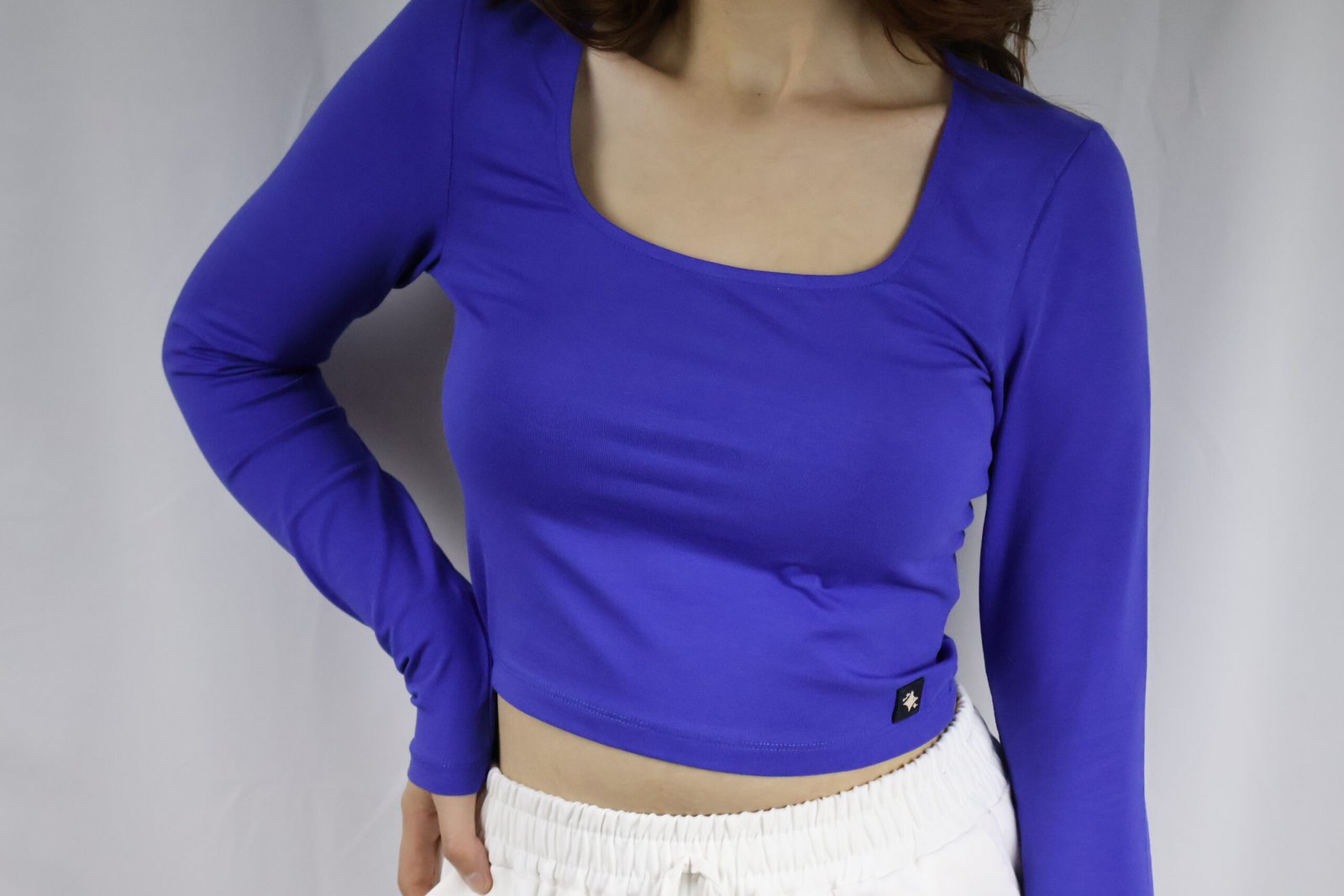 Model: Crop, kare yaka, uzun kollu