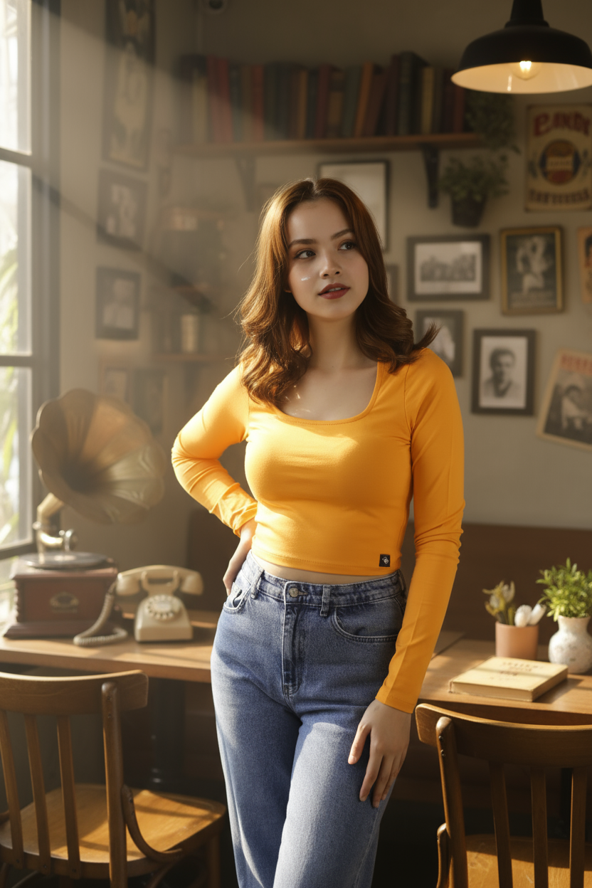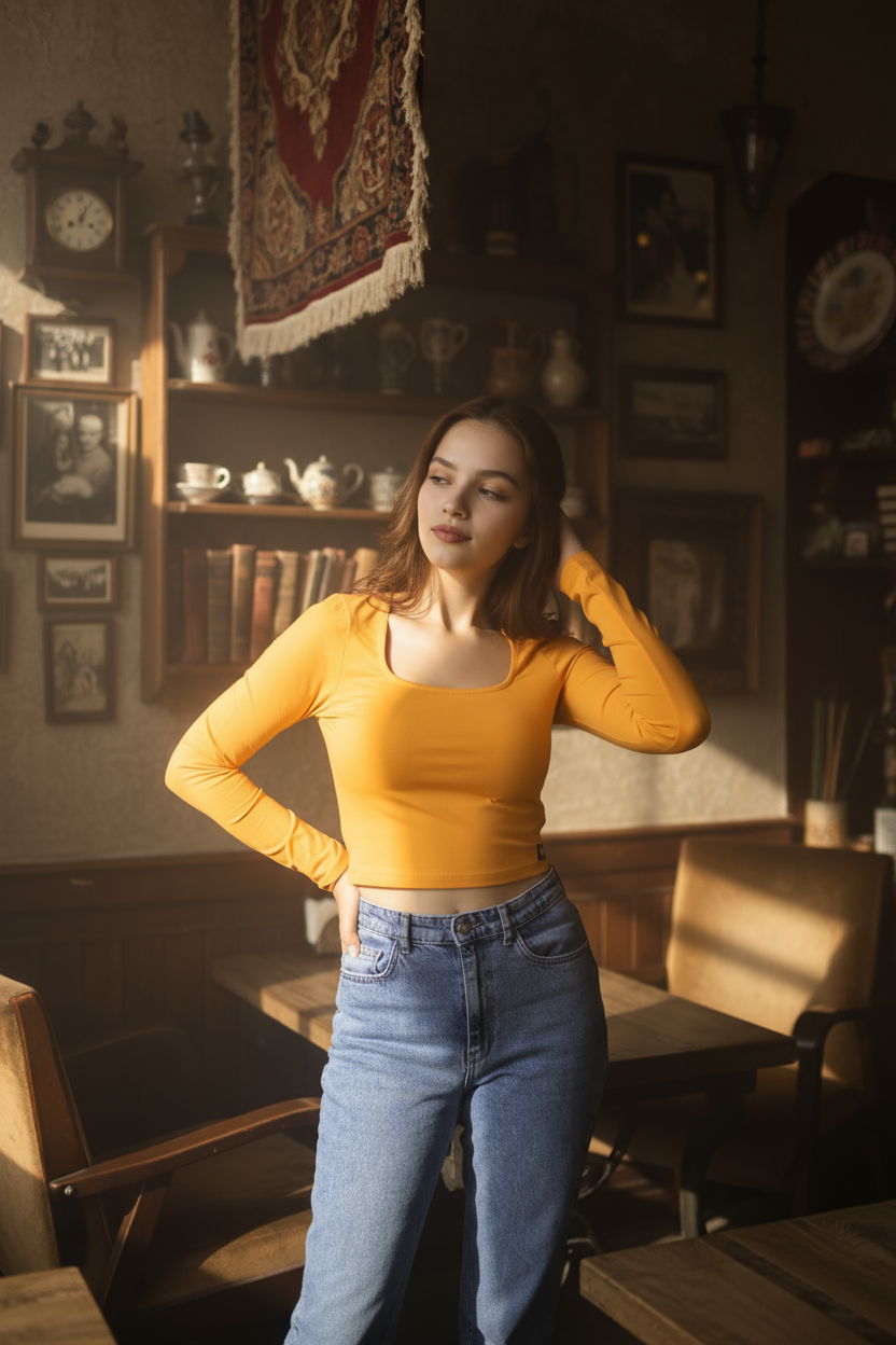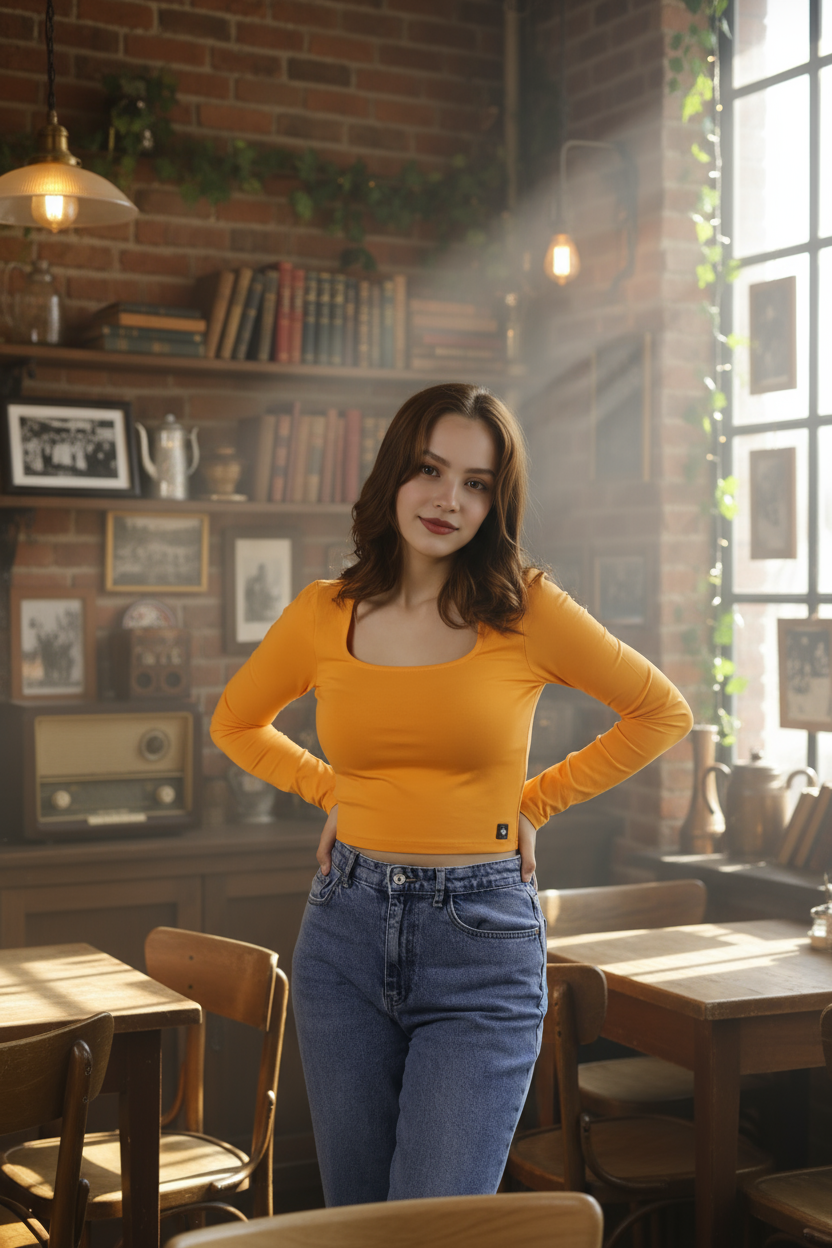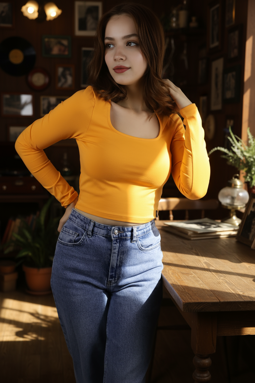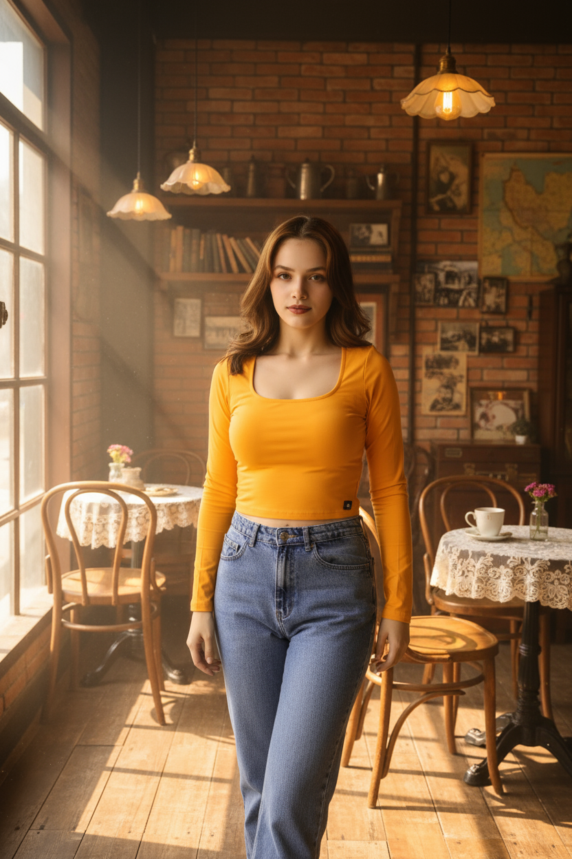 Crop kesimiyle yüksek belli jean veya eteklerle mükemmel uyum sağlayan bu bluz; gündüz şehir stili, kafe/alışveriş buluşmaları veya katmanlı ofis kombinleri için ideal.