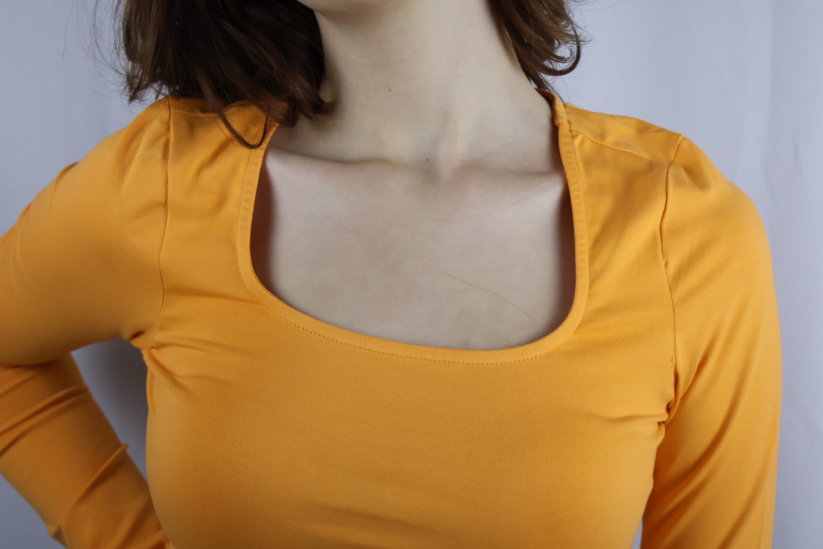 Kadın Turuncu Kare Yakalı Crop Uzun Kollu Pamuklu Bluz – Şık & Rahat