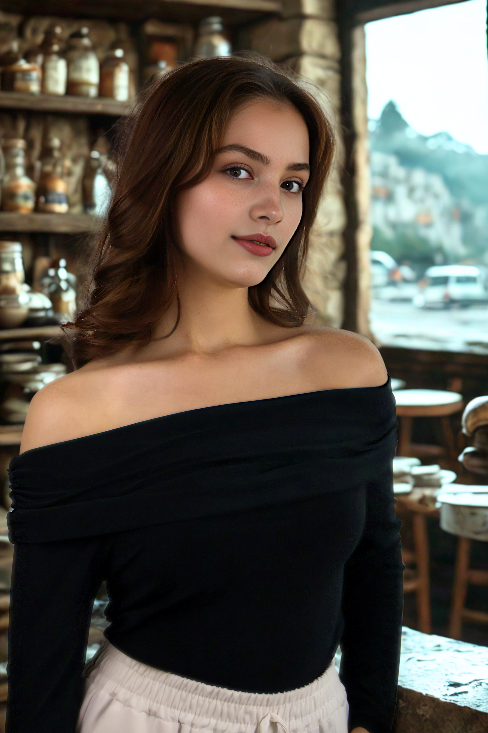 Kadın Omzu Açık Sandy Kumaş Bluz – Siyah Zarif & Şık