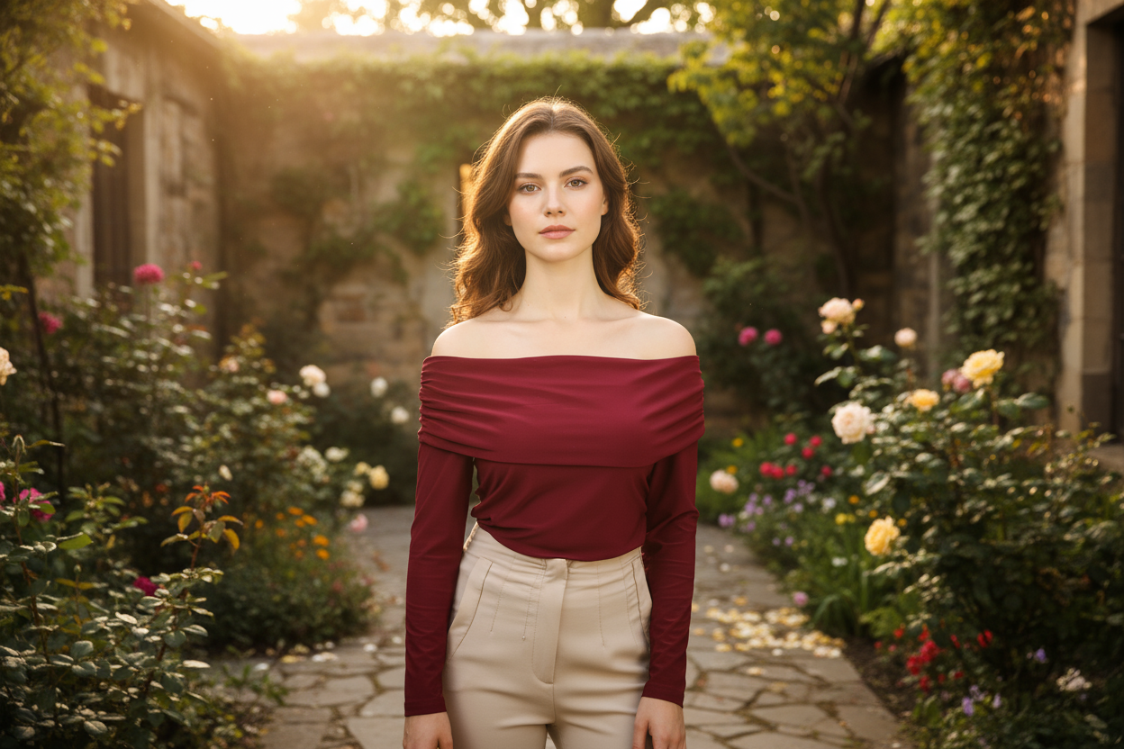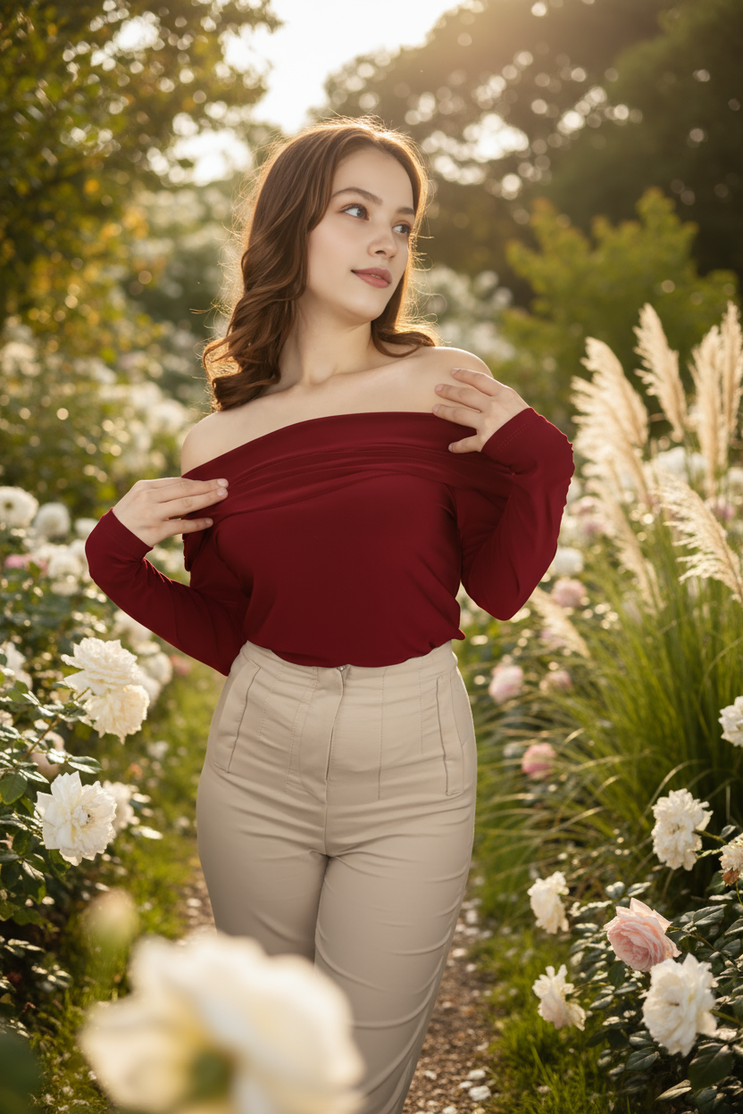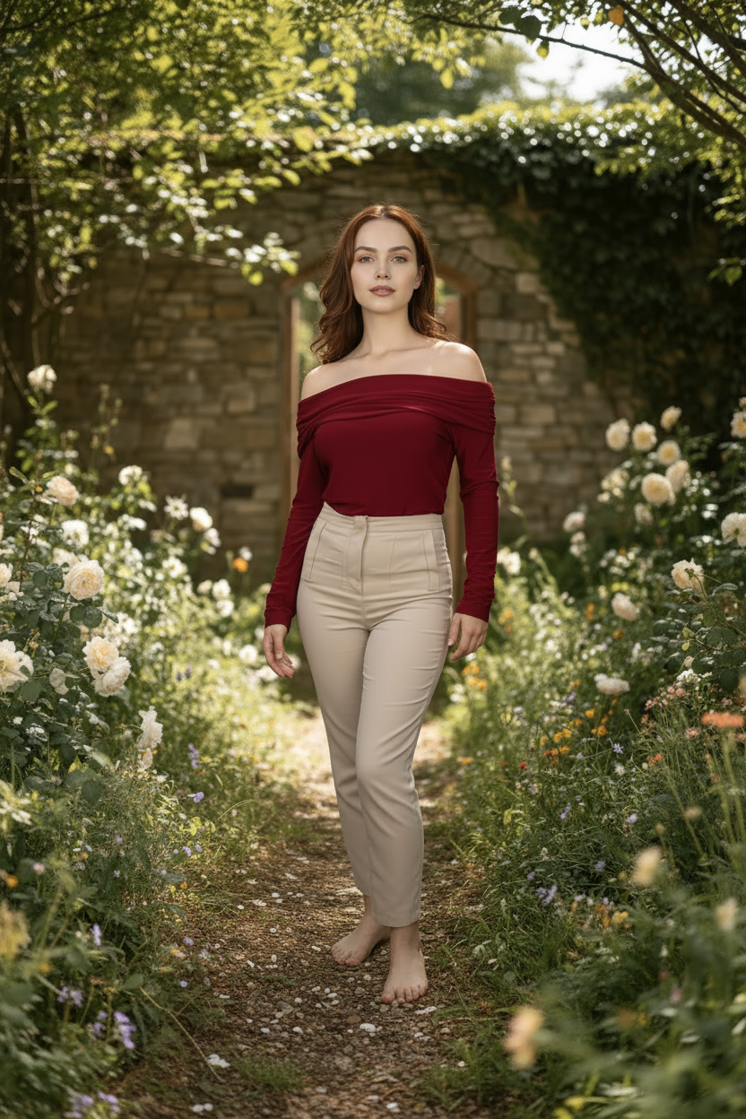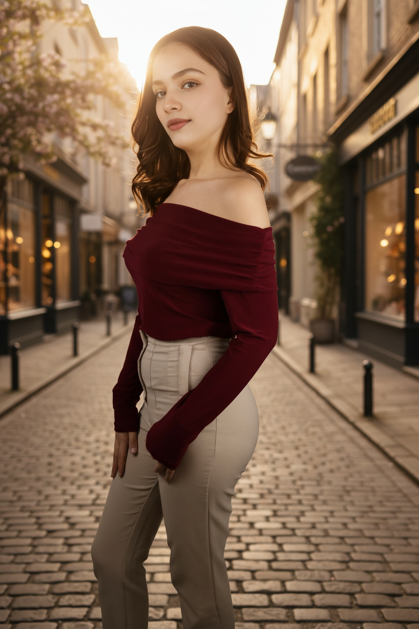 Kadın Omzu Açık Sandy Kumaş Bluz – Bordo| Zarif & Şık
