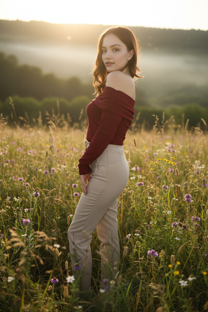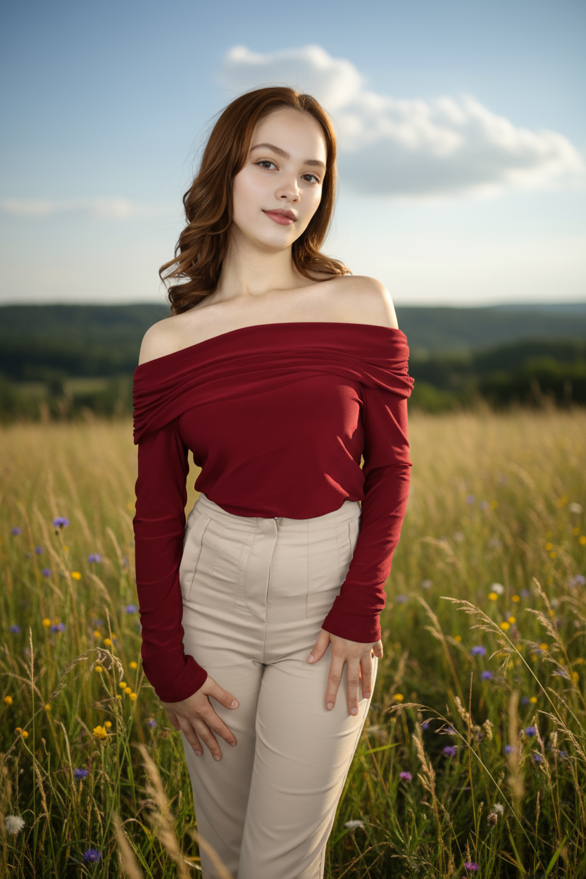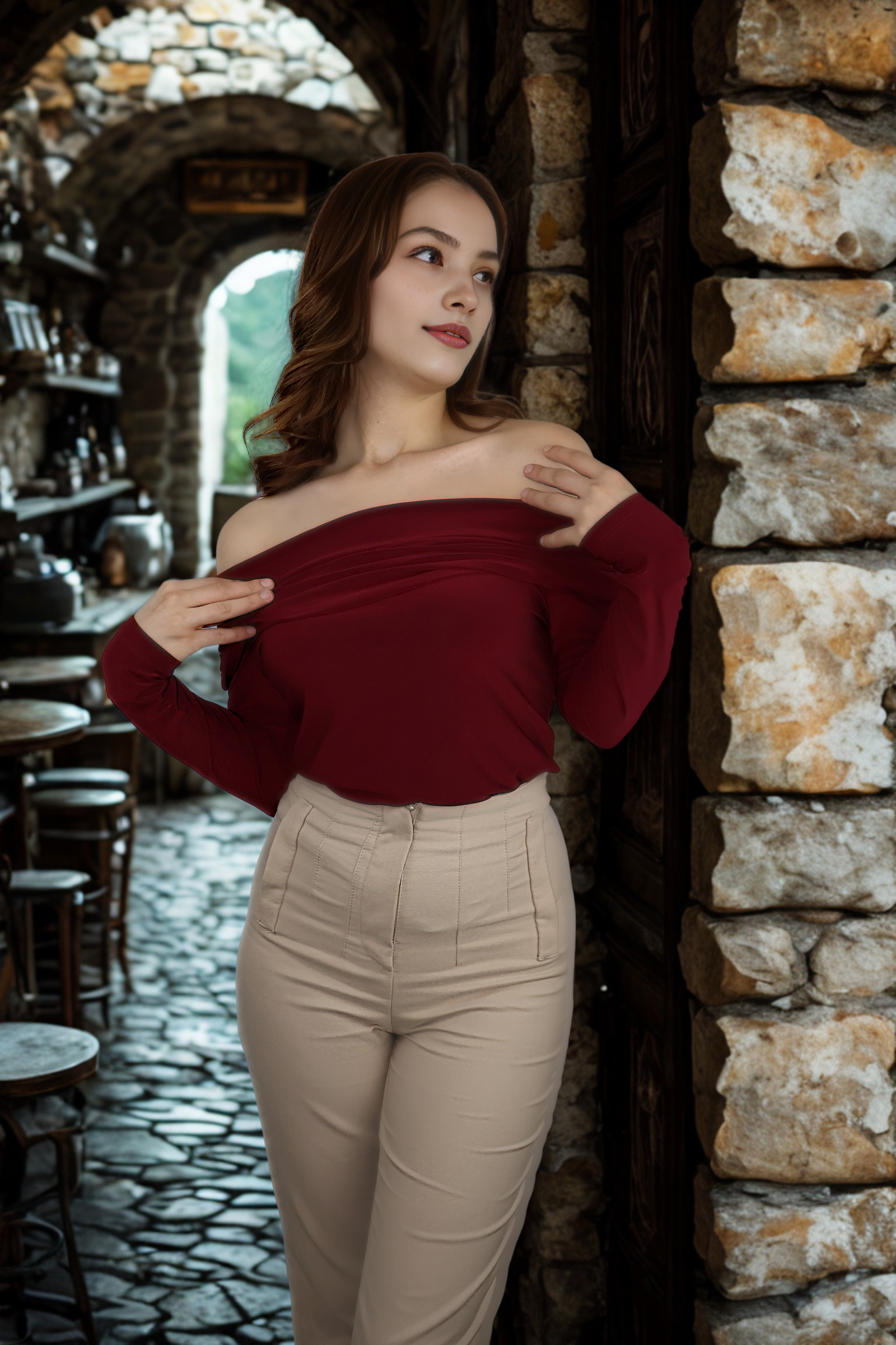 Kadın Omzu Açık Sandy Kumaş Bluz – Bordo| Zarif & Şık